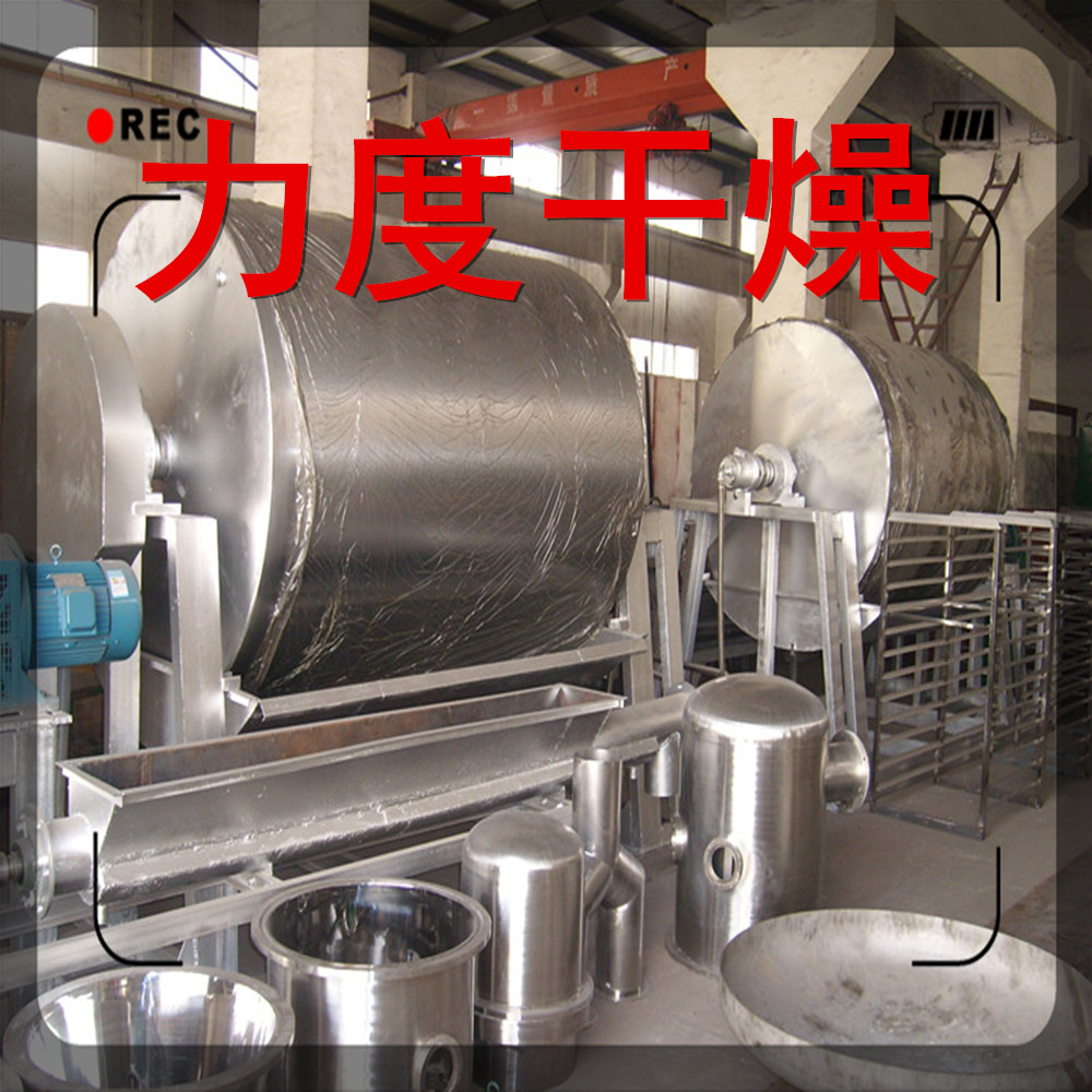 滚筒干燥机是一种内加热传导型转动连续干燥设备。旋转的滚筒通过其下部料槽,粘附着一厚度的料膜,热量通过管道输送至滚筒内壁,传导到滚筒外壁,再传导给料膜,使料膜中的湿得到蒸发、脱湿、使含湿分的物料得到干燥。干燥好的物料被装置在滚筒表面的刮刀铲离滚筒,到置于刮刀下方的螺旋输送器,通过螺旋输送器将干物料集中、包装。