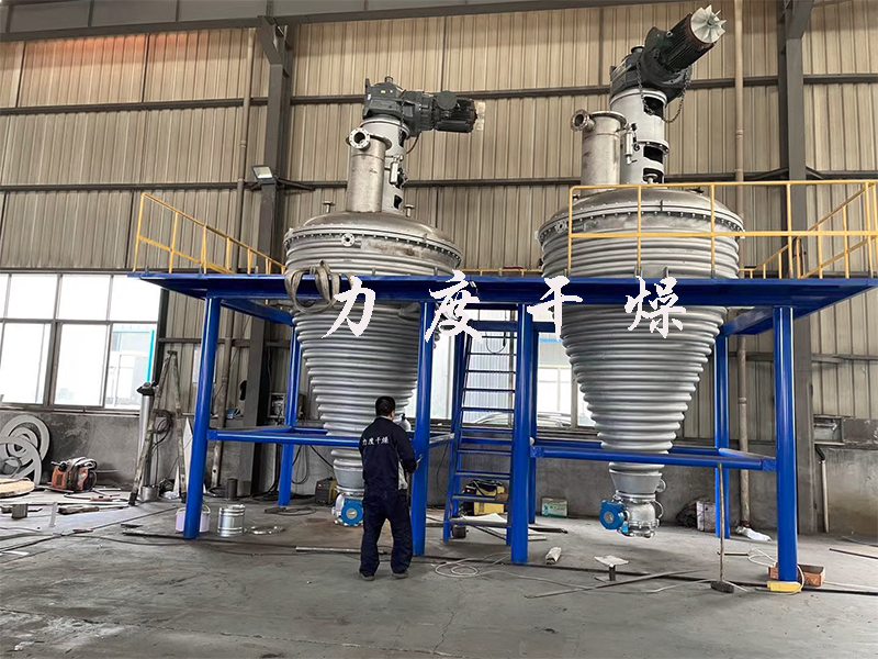 因客户要求,力度干燥5000L单锥锥形螺带真空干燥机整体双相不锈钢制作,采用盘管加热,使受热更均匀,真空取样阀直接与螺带内加热锥形真空干燥机链接,无任何死角,避免样品被污染,大口径球截面卸料阀,偏心轴结构,密封面无摩擦无阻碍,在直径方向全部打开,符合GMP规范设计,无死角,无残留。
